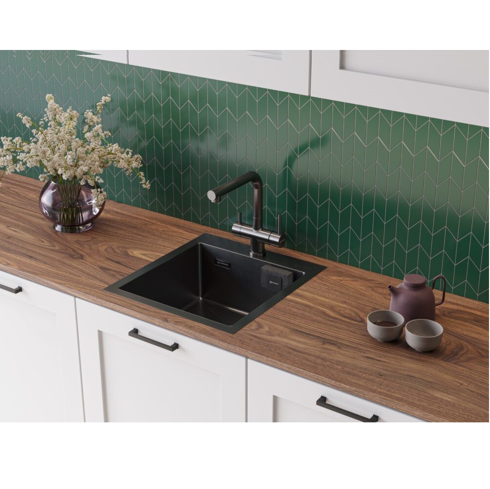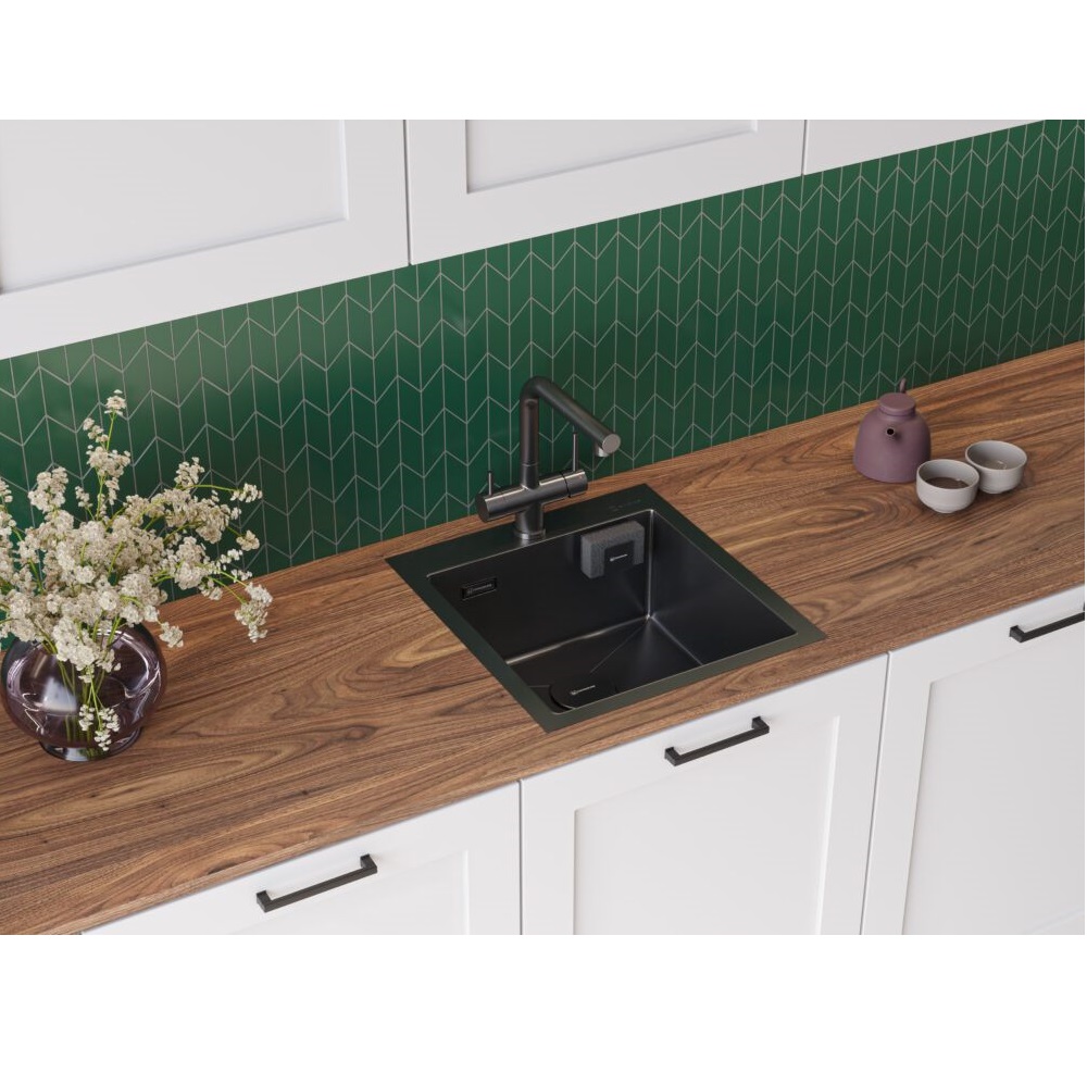 Благодаря магнитному креплению, SH-01 легко фиксируется в мойках из нержавеющей стали — без инструментов, скотча и повреждений поверхности. Для моек из композитных материалов в комплекте предусмотрена двусторонняя клейкая лента.