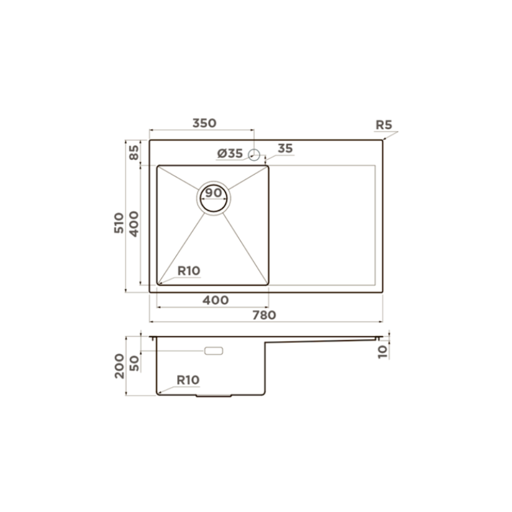 Мойка кухонная Omoikiri из коллекции Akisame 78-IN-L имеет размеры 780х510 мм., изготовлена из нержавеющей стали. Форма — прямоугольная, одна чаша с отверстием для смесителя. Сифон в комплекте. Ширина чаши 40. Врезной монтаж. Имеется крыло.