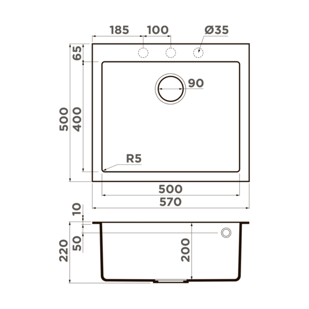 Мойка кухонная Omoikiri из коллекции Bosen 57-BE имеет размеры 570х500 мм., изготовлена из искусственного гранита. Форма — прямоугольная, одна чаша без отверстия для смесителя. Сифон в комплекте. Ширина чаши 50. Подстольный монтаж.