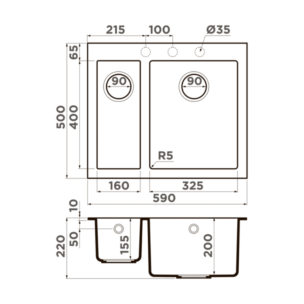 Мойка кухонная Omoikiri из коллекции Bosen 59-2-WH имеет размеры 590х500 мм., изготовлена из искусственного гранита. Форма — прямоугольная, одна чаша с отверстием для смесителя. Сифон в комплекте. Ширина чаши 32,5. Врезной монтаж. Имеется дополнительная чаша.