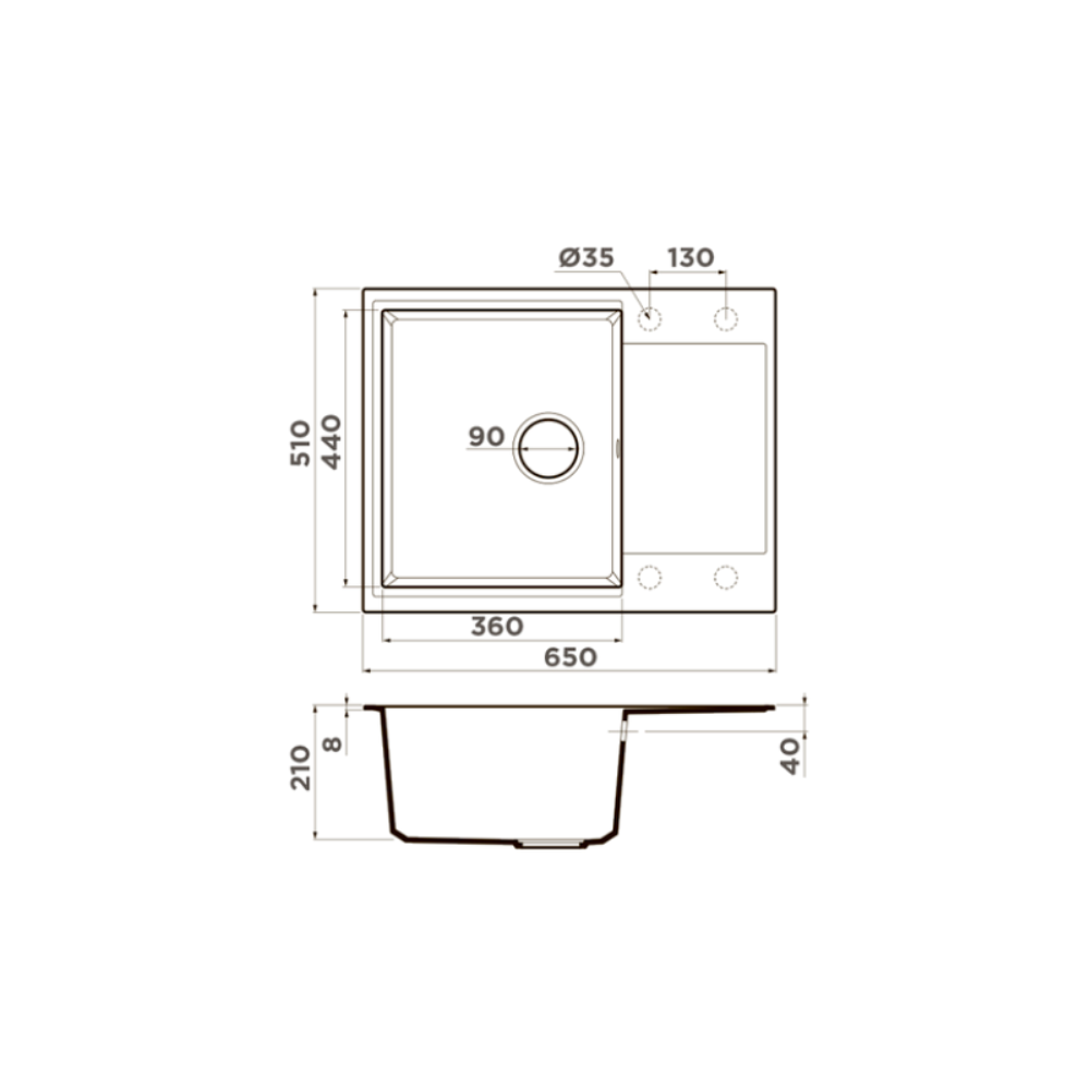 Мойка кухонная Omoikiri из коллекции Daisen 65T-SA имеет размеры 650х510 мм., изготовлена из искусственного гранита. Форма — прямоугольная, одна чаша без отверстия для смесителя. Сифон в комплекте. Ширина чаши 36. Врезной монтаж. Имеется крыло.