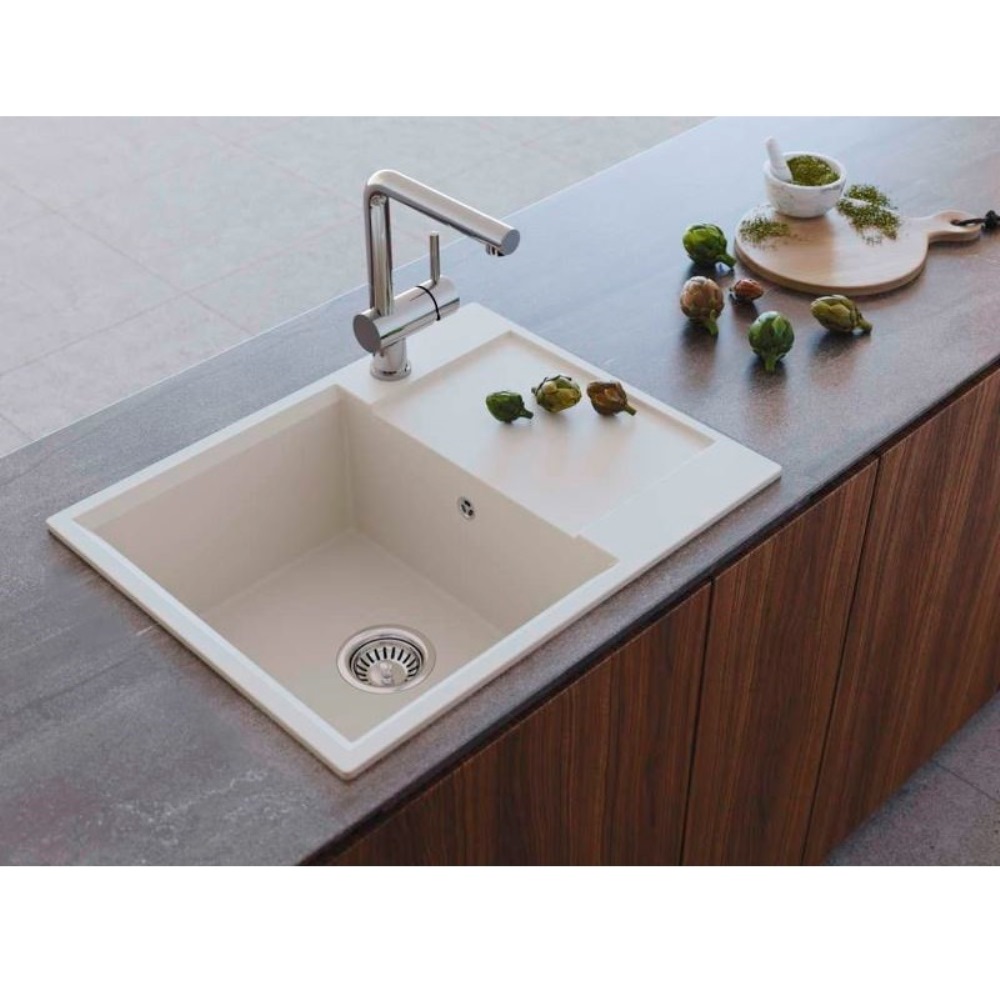 Мойка кухонная Omoikiri из коллекции Daisen 65-GR имеет размеры 650х510 мм., изготовлена из искусственного гранита. Форма — прямоугольная, одна чаша без отверстия для смесителя. Сифон в комплекте. Ширина чаши 36. Врезной монтаж. Имеется крыло.
