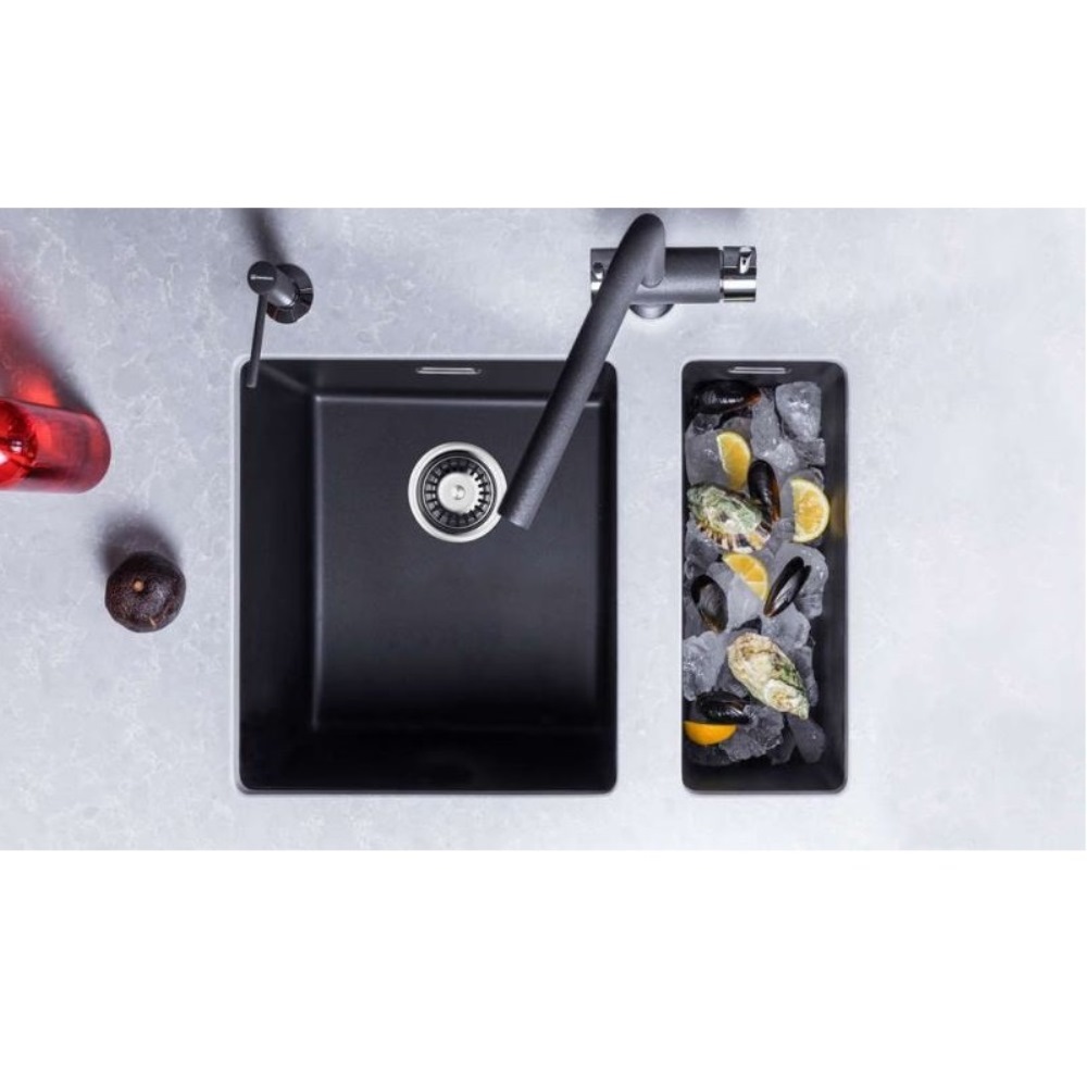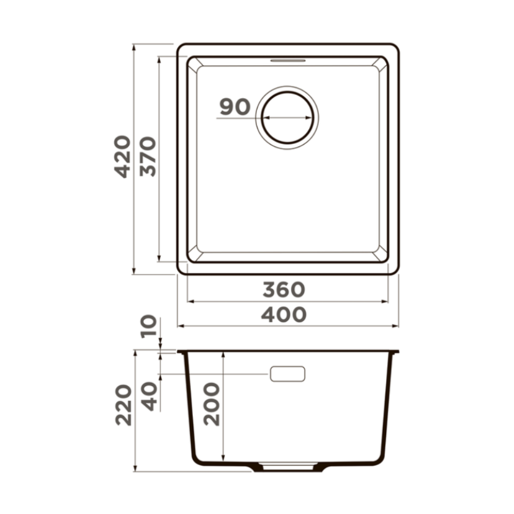 Мойка кухонная Omoikiri из коллекции Kata 40-U-SA имеет размеры 400х420 мм., изготовлена из искусственного гранита. Форма — прямоугольная, одна чаша без отверстия для смесителя. Сифон в комплекте. Ширина чаши 36. Подстольный монтаж