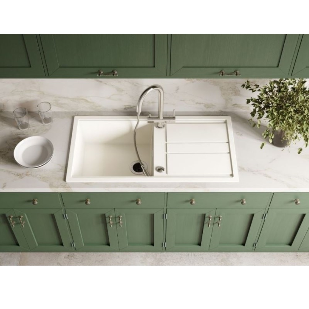 Мойка кухонная Omoikiri из коллекции Kitagawa 100-GR имеет размеры 1000х510 мм., изготовлена из искусственной керамики. Форма — прямоугольная, одна чаша без отверстия для смесителя. Сифон в комплекте. Ширина чаши 47,8. Врезной монтаж. Имеется крыло.