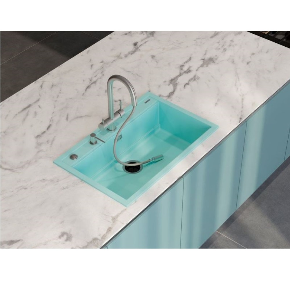 Мойка кухонная Omoikiri из коллекции Kitagawa 79-LB-WH имеет размеры 790х510 мм., изготовлена из искусственной керамики. Форма — прямоугольная, одна чаша без отверстия для смесителя. Сифон в комплекте. Ширина чаши 72,6. Врезной монтаж.