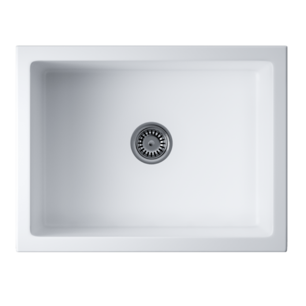 Мойка кухонная Omoikiri из коллекции Mikura 61-WH имеет размеры 610х460 мм., изготовлена из искусственной керамики. Форма — прямоугольная, одна чаша без отверстия для смесителя. Сифон в комплекте. Ширина чаши 54. Фронтальный монтаж.