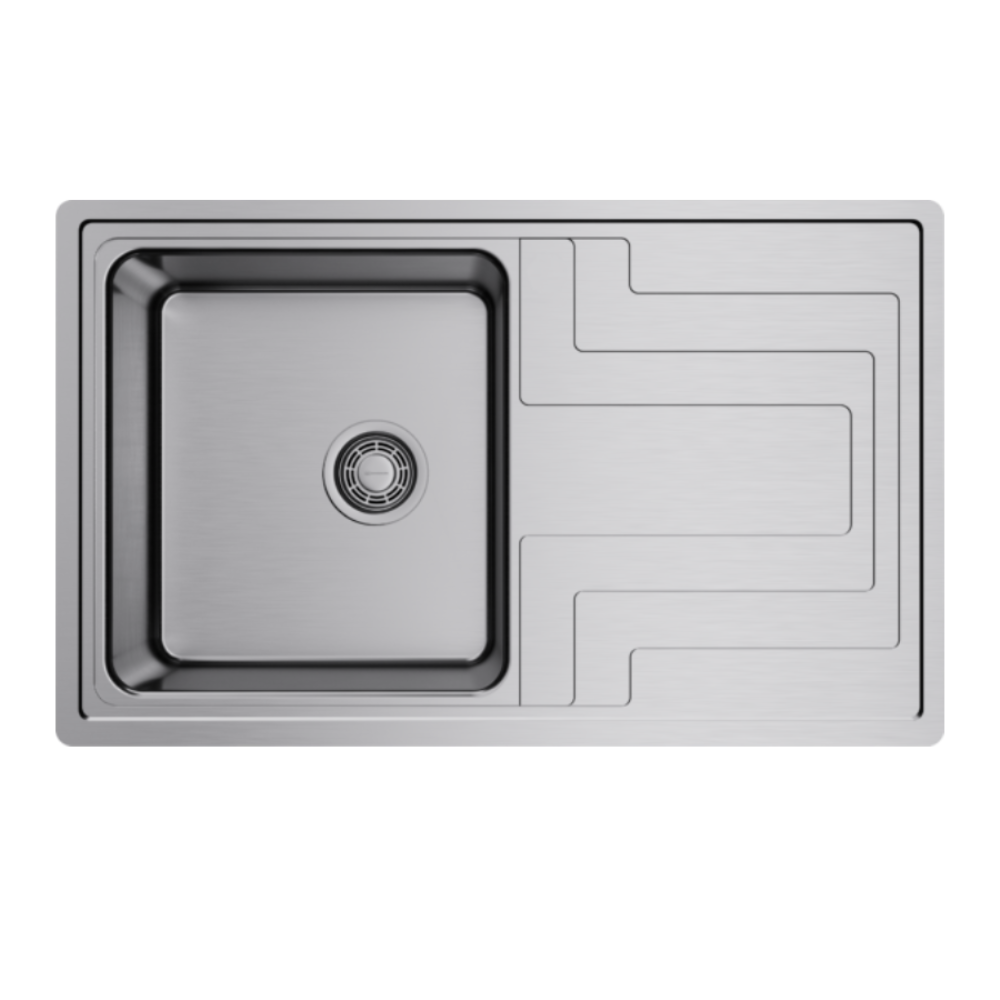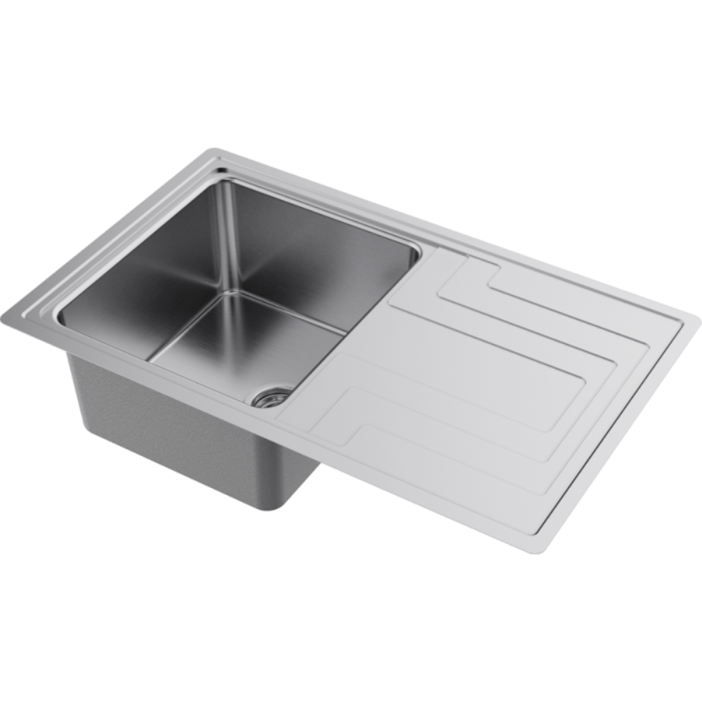 Мойка кухонная Omoikiri из коллекции Mizu 78-IN имеет размеры 780х480 мм., изготовлена из нержавеющей стали. Форма — прямоугольная, одна чаша без отверстия для смесителя. Сифон в комплекте. Ширина чаши 35. Врезной монтаж. Имеется крыло.