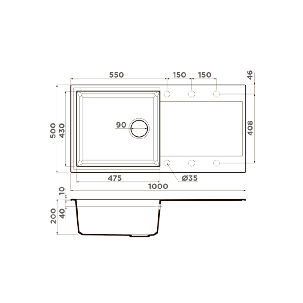 Мойка кухонная Omoikiri из коллекции Sakaime 100-PL имеет размеры 1000х500 мм., изготовлена из искусственного гранита. Форма — прямоугольная, одна чаша без отверстия для смесителя. Сифон в комплекте. Ширина чаши 47,5. Врезной монтаж. Имеется крыло.