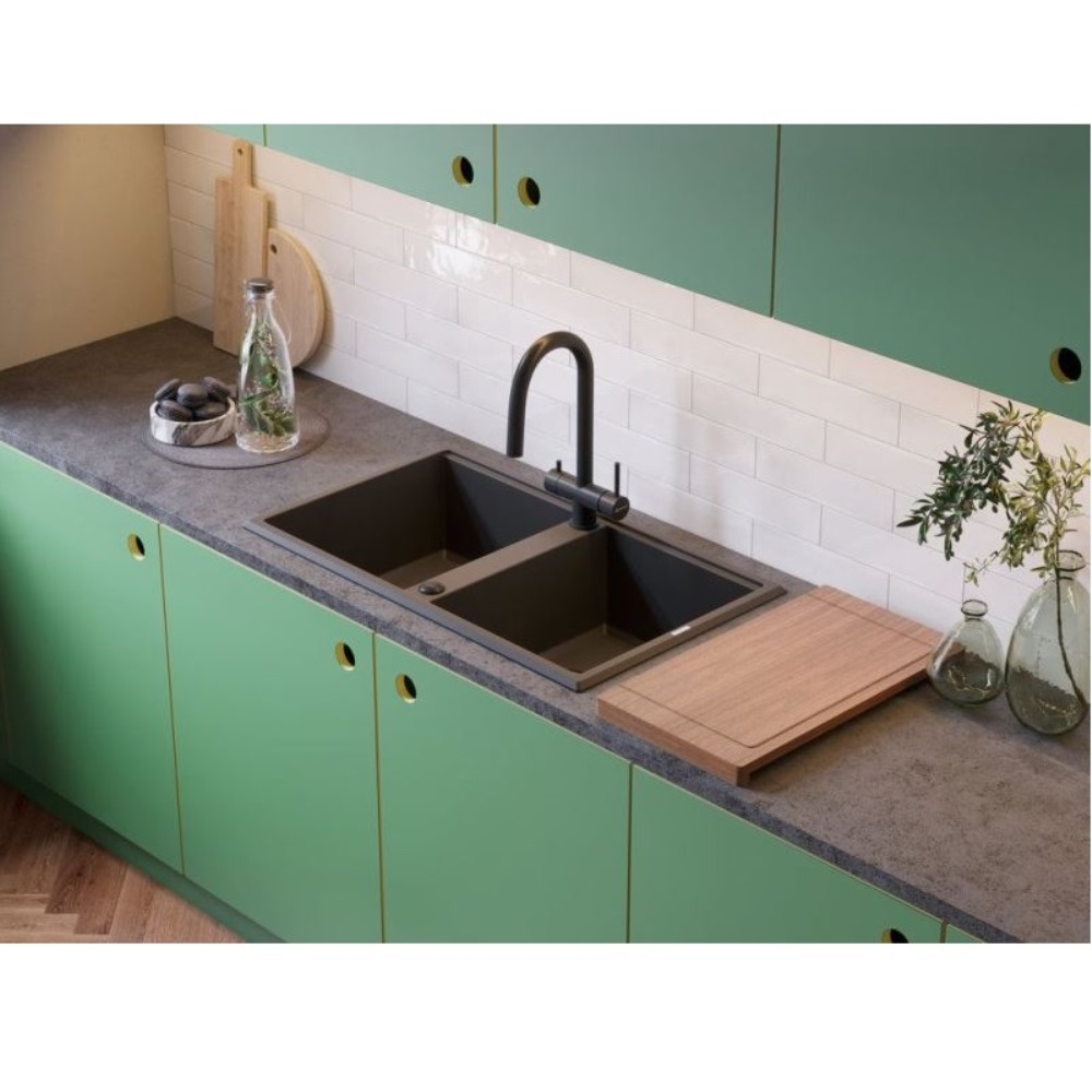 Мойка кухонная Omoikiri из коллекции Tedori 86-2-BE имеет размеры 860х510 мм., изготовлена из искусственного гранита. Форма — прямоугольная, две чаши без отверстия для смесителя. Сифон в комплекте. Ширина чаши 36,5. Врезной монтаж.