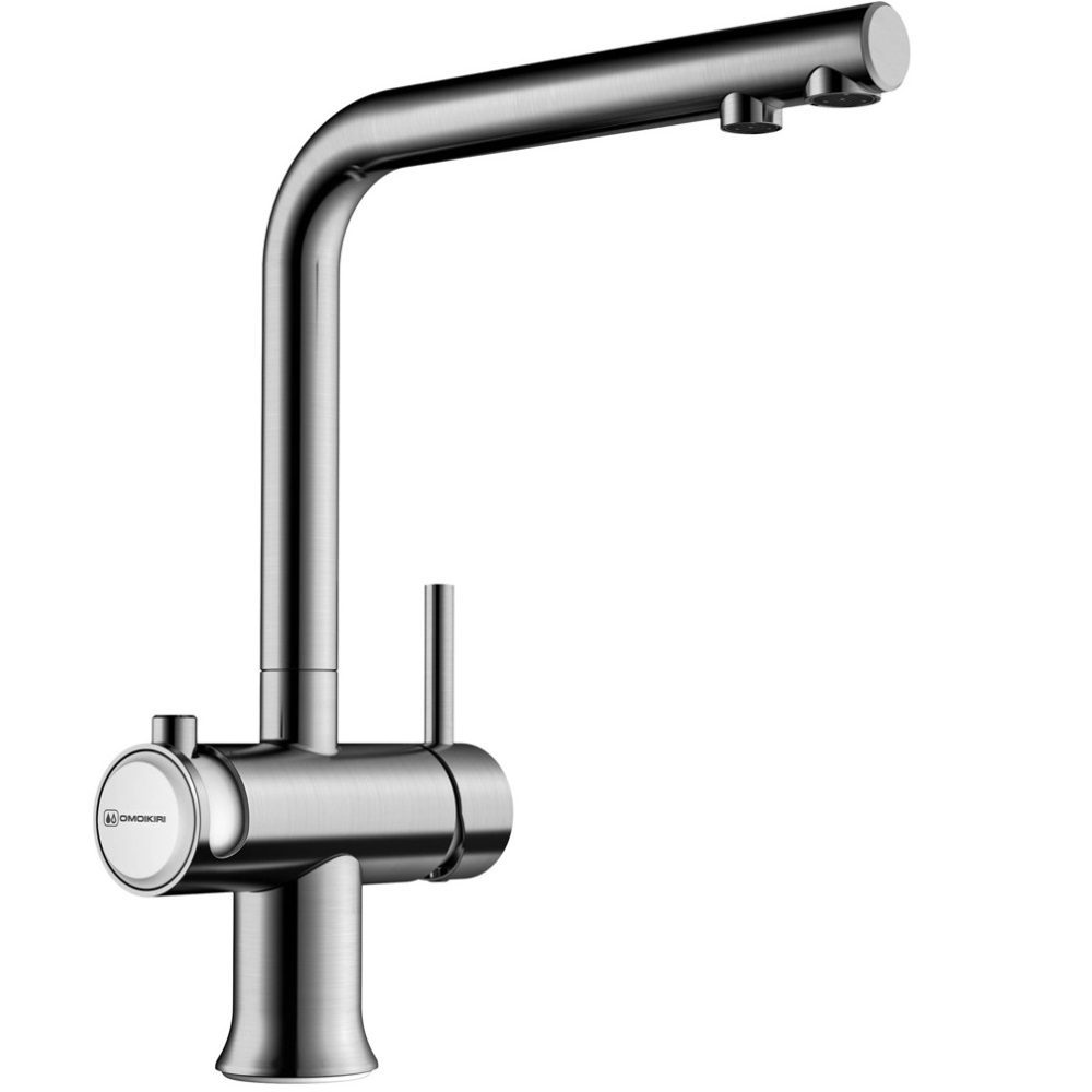 Смеситель для кухни Omoikiri Hotaru с подключением фильтра оснащен рычажным управлением для регулировки температуры и напора воды. Горизонтальный монтаж на 1 отверстие. Поворотный излив 176 мм.