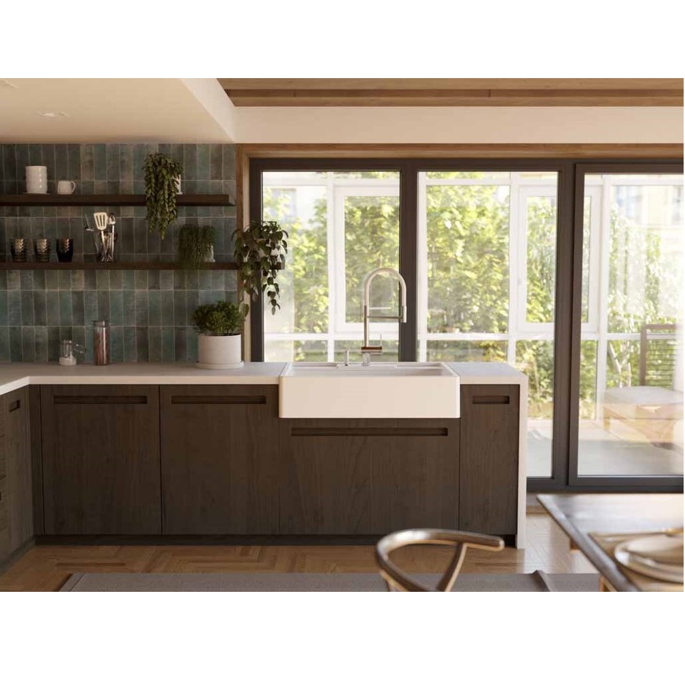 Смеситель для кухни Omoikiri Kanto-2 Plus с подключением фильтра оснащен рычажным управлением для регулировки температуры и напора воды. Горизонтальный монтаж на 1 отверстие. Гибкий излив 220 мм.