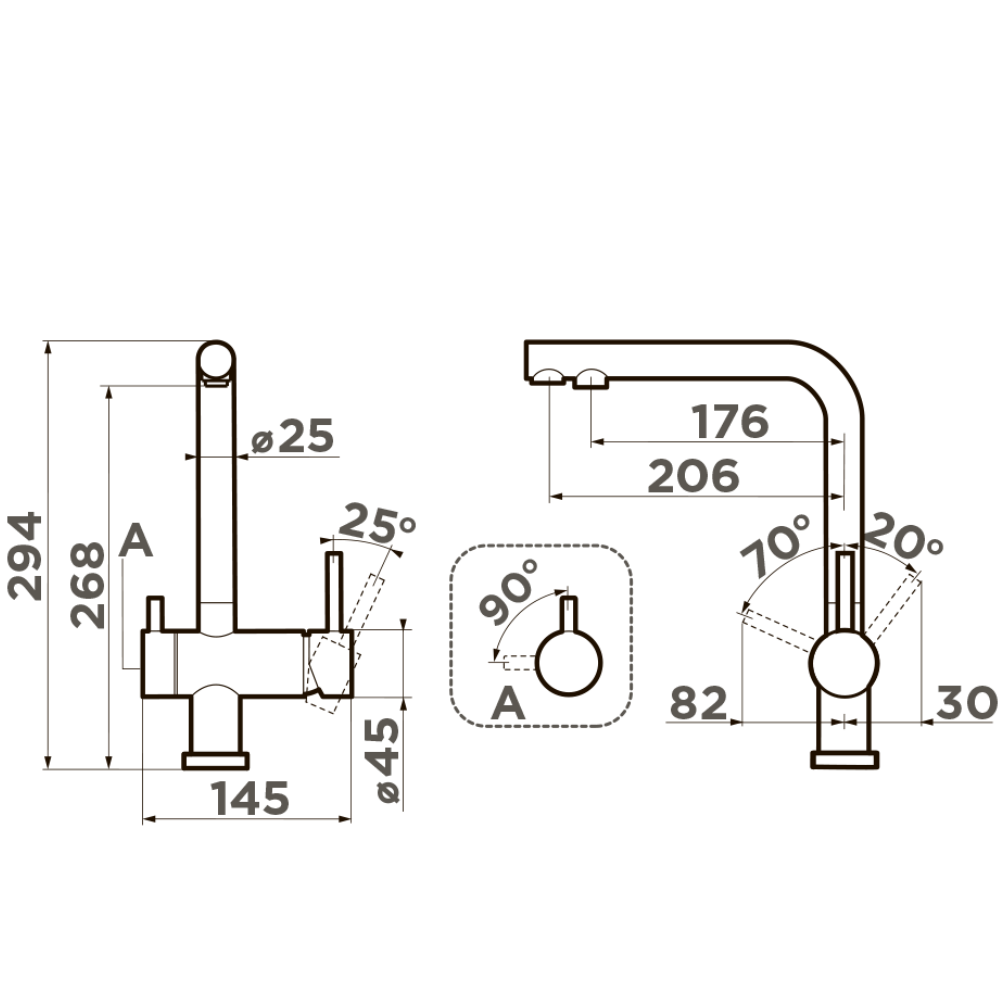 Смеситель для кухни Omoikiri Nagano с подключением фильтра оснащен рычажным управлением для регулировки температуры и напора воды. Горизонтальный монтаж на 1 отверстие. Поворотный излив 176 мм.