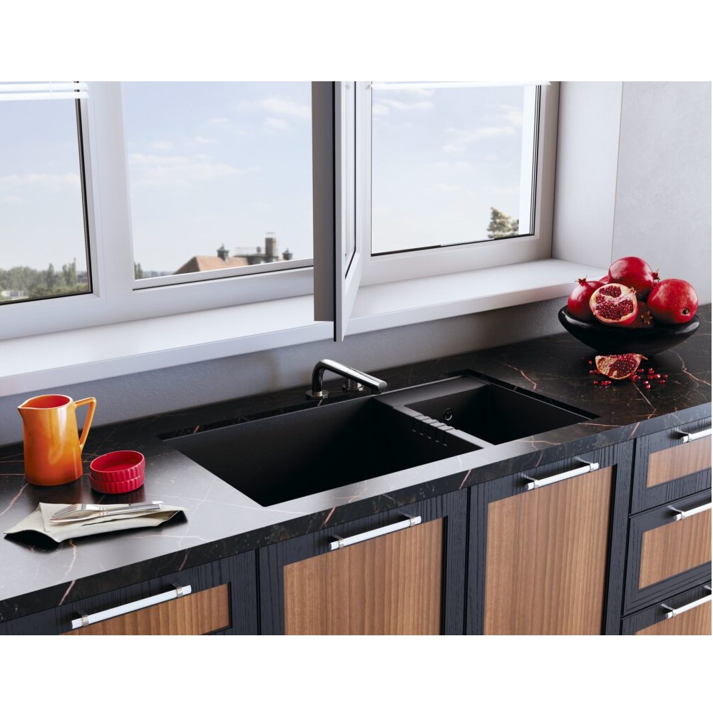 Смеситель для кухни Omoikiri Nara-S оснащен рычажным управлением для регулировки температуры и напора воды. Горизонтальный монтаж на 2 отверстия. Вытяжной излив 220 мм.